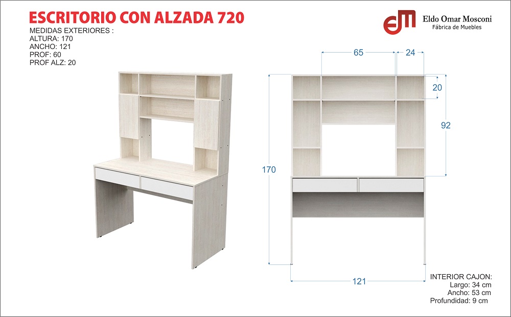 ESCRITORIO DE COMPUTACION 720 CON ALZADA